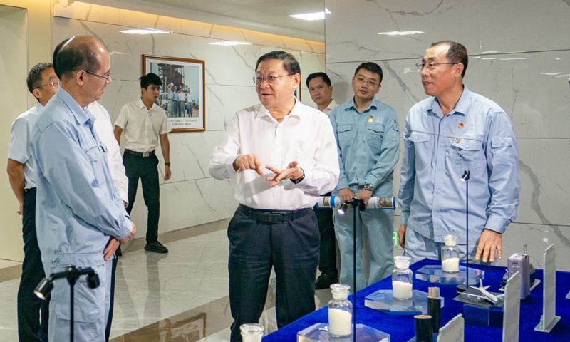 在调研过程中,王伟中详细了解了LAO、PAO、mPAO、POE、异壬酸、液体橡胶等特色产品攻关情况,对公司近年来在突破“卡脖子”技术上取得的突出成绩给予充分肯定,强调要深入贯彻习近平总书记关于科技创新重要论述精神,对标世界一流,聚焦“高精尖”产品等关键领域,充分发挥企业科研优势,加大攻关力度,突破“卡脖子”难题,为实现高水平科技自立自强、建设科技强国贡献力量。